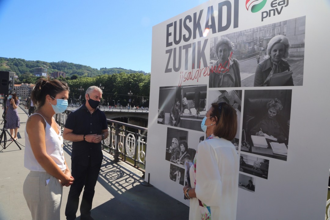 Berdintasunari buruzko ekitaldia. Inmaculada Boneta, Maitane Ipiñazar, Iñigo Urkullu